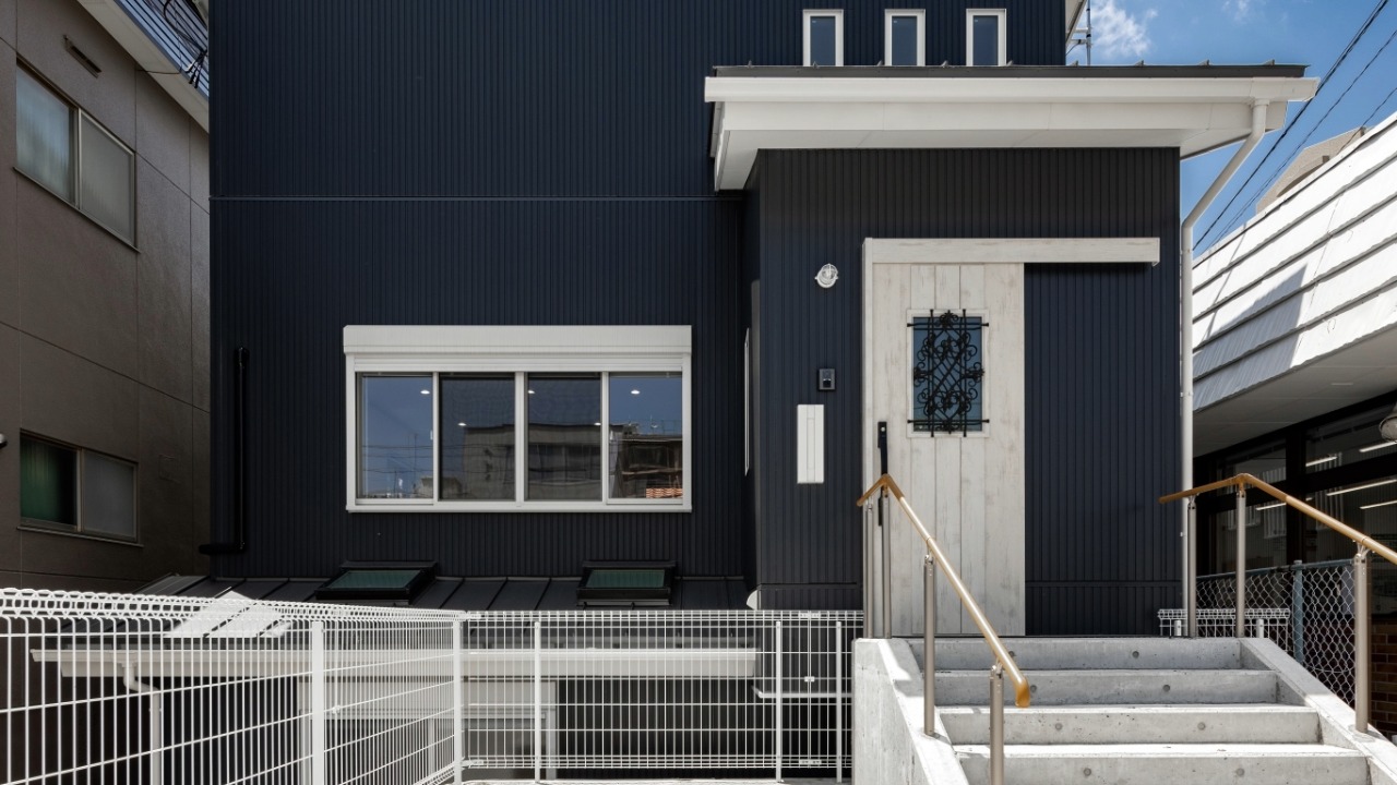 アイクラーホームの外観の特徴は、平屋で屋根が緩やかな勾配であること、構造はポスト&ビーム(在来工法)、支える梁や柱が見えていること、外壁はアースカラーで、ドアの色にアクセントカラーが使われていることなどが主な特徴です。